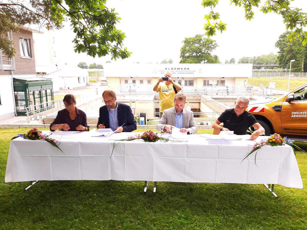 230620_AZW v.l.n.r.: Regine Rist, Bürgermeisterin Tettnang, Ole Münder, Bürgermeister Langenargen, Daniel Enzensperger, Verbandsvorsitzender, Stefan Fehringer, 1. stv. Bürgermeister Kressbronn