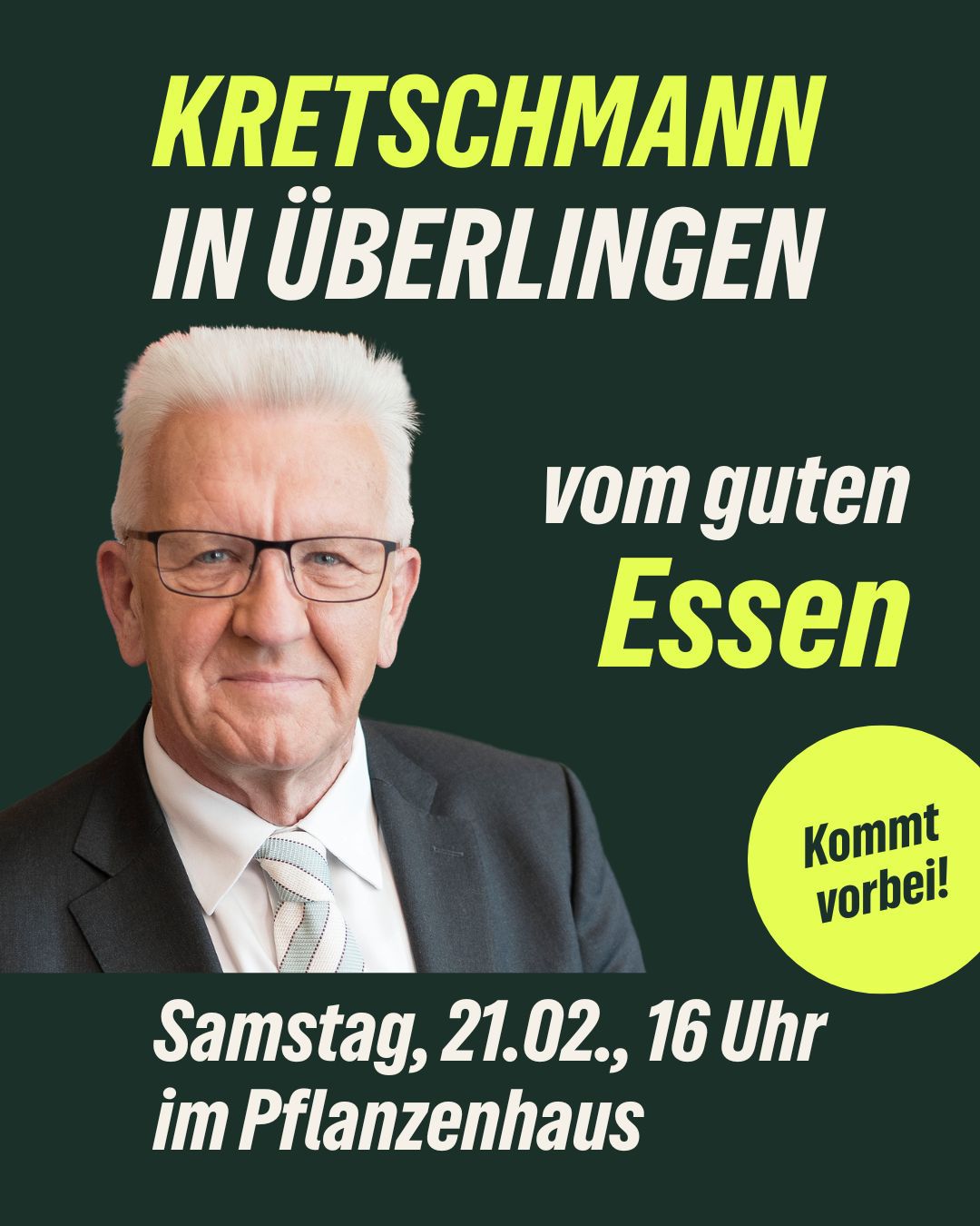 Der Kreisverband und Martin Hahn freuen sich sehr, dass wir im Bodenseekreis unseren amtierenden Ministerpräsidenten Winfried Kretschmann zu einer besonderen Veranstaltung begrüßen dürfen.