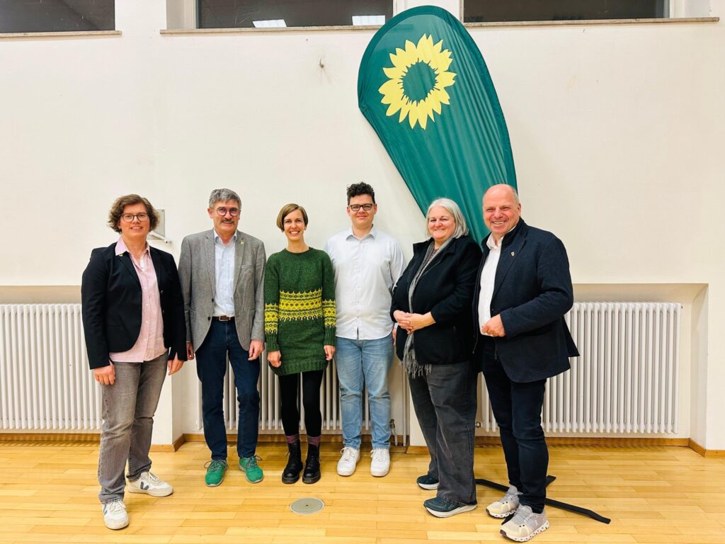 Unser Grüner Kreisvorstand. V.l.n.r.: Christine Bernard, Bernd Woerner, Maresa Bussa, Jonas Alber, Sabine Witzigmann (Kreisschatzmeisterin), Martin Hahn (MDL),